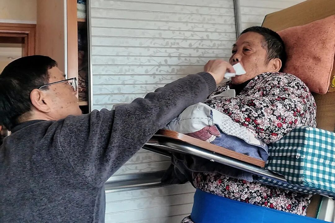 他每2小时就要给岳母翻身防生疮