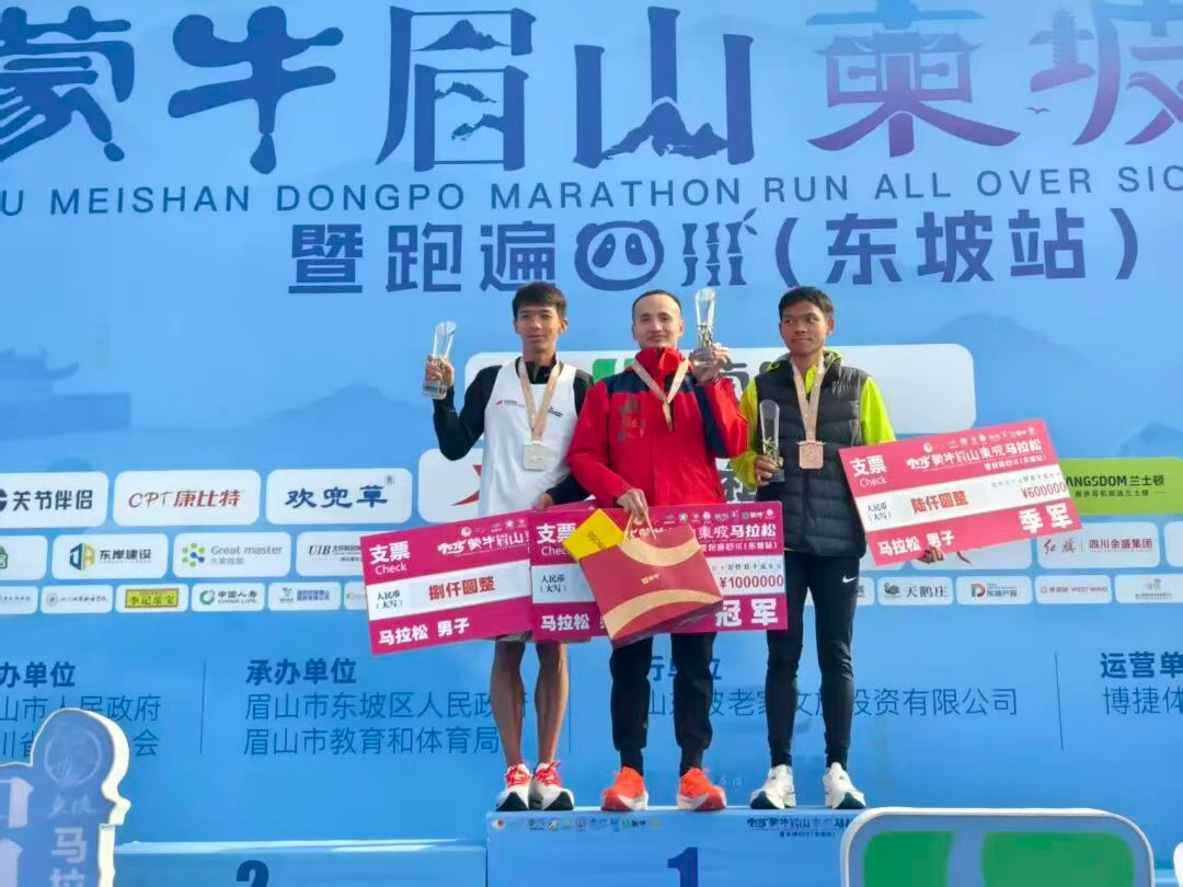 经过激烈角逐,黄仁伟以2小时19分16秒的枪声成绩获得此次全程马拉松男子组冠军,这也是眉山“东马”首个全马赛会纪录。张廷以2小时40分36秒的枪声成绩获得此次全程马拉松女子组冠军。
